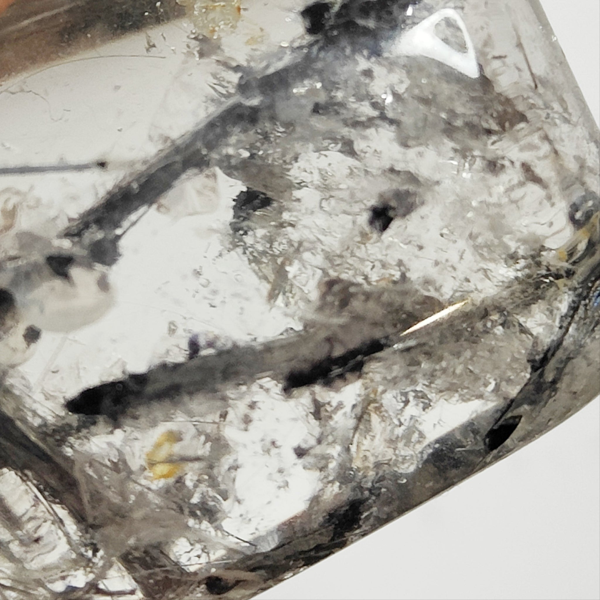 Tourmalated Quartz is clear or white quartz that has pieces of Black Tourmaline within it. It shares the properties of its components – the grounding and deflection of negative energy found in Tourmaline, as well as the energy amplification and consciousness raising ability of Quartz.