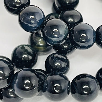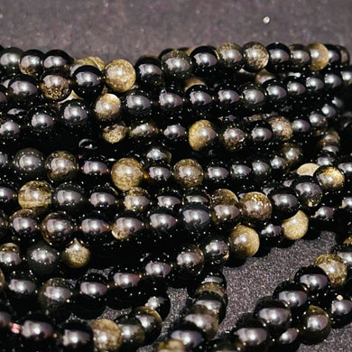 Golden Sheen Obsidian Triple Wrap Stretchy Bracelet