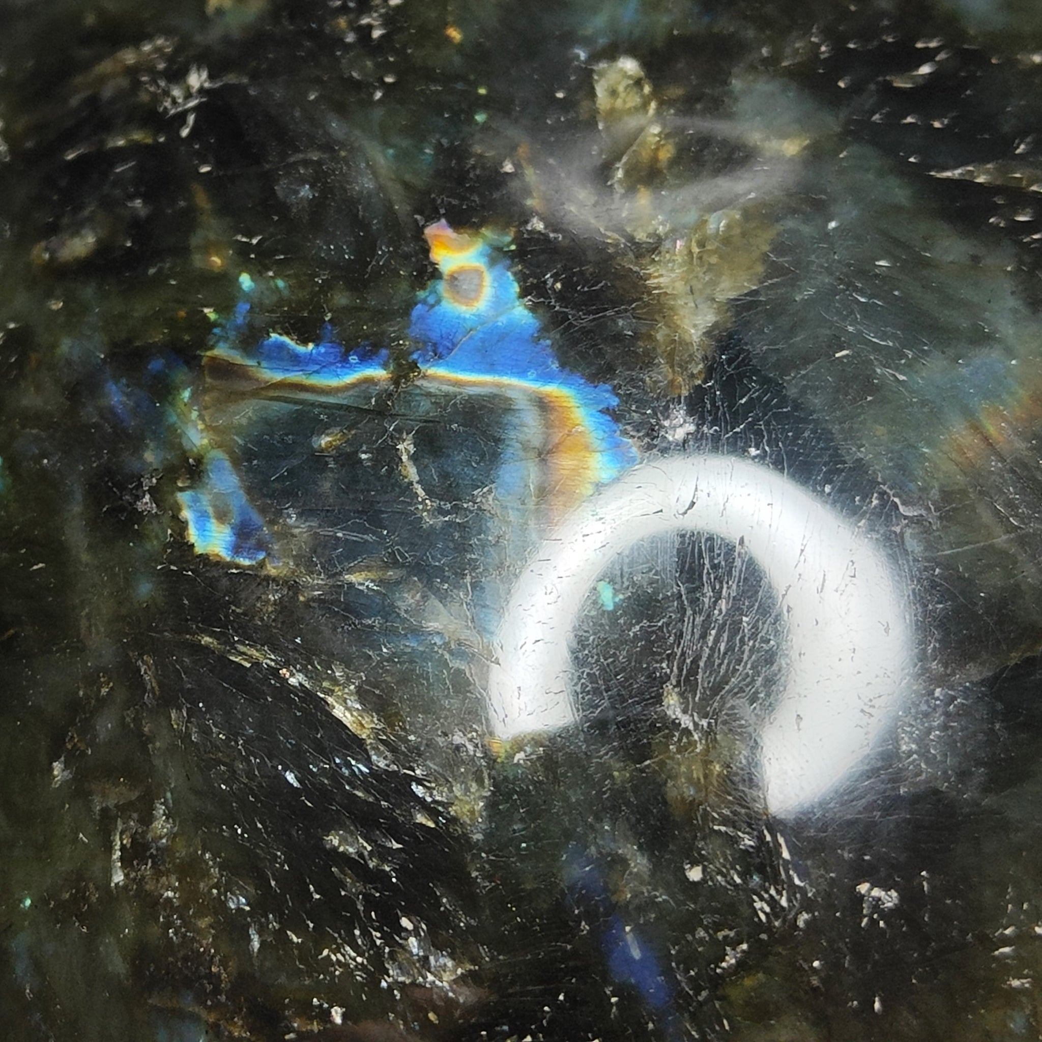 Labradorite is believed to heighten and awaken spiritual abilities, intuition, and inner fortitude, while boosting self-esteem. It also protects and harmonizes our aura by purifying and aligning our Chakras. Said to be a powerful crystal of metamorphosis.