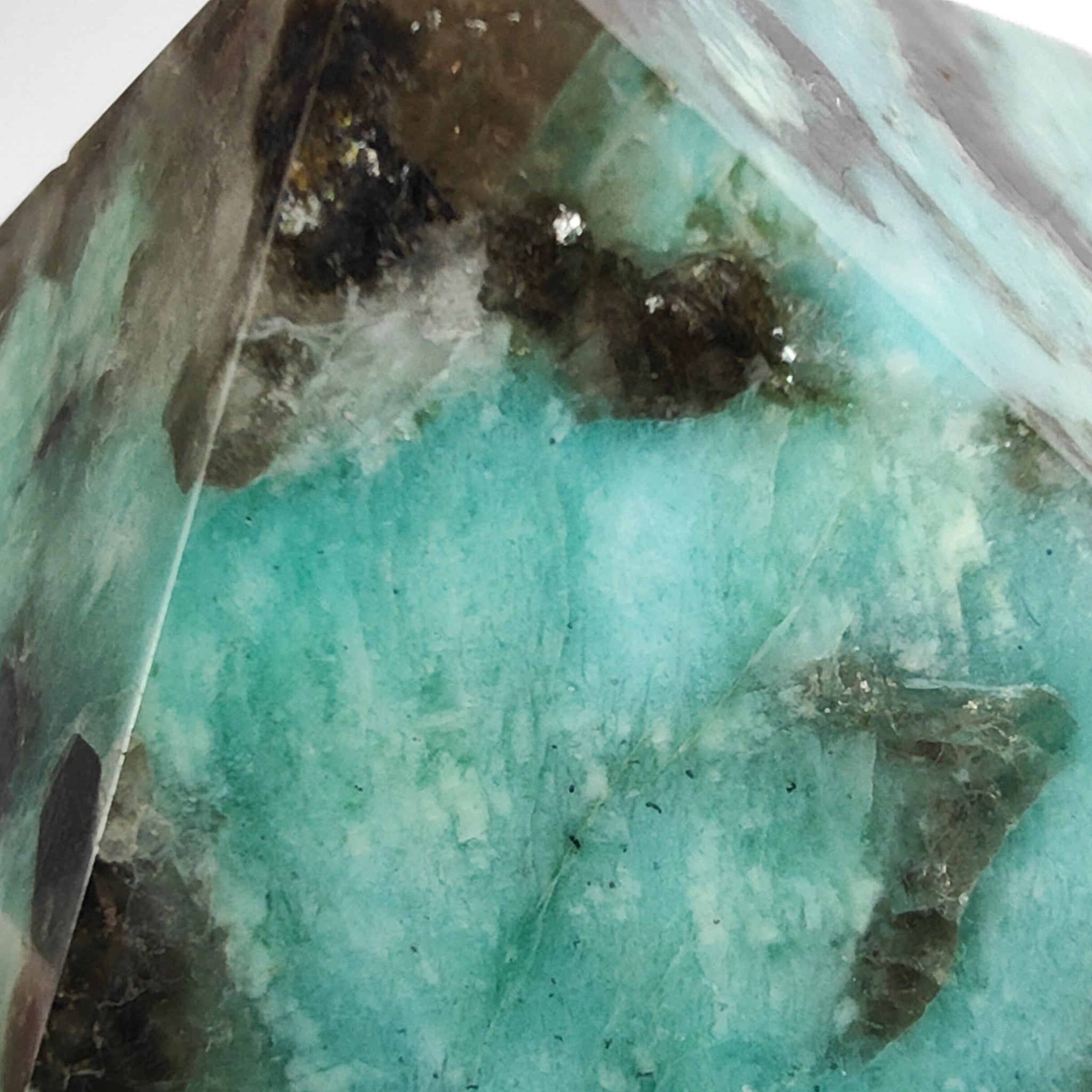 Amazonite with Smoky Quartz is a unique pairing that blends the calming blue-green tones of Amazonite with the grounding energy of Smoky Quartz. Amazonite is believed to encourage truth, balance and open communication, while Smoky Quartz is said to promote protection, stability and emotional strength. Together, they are often used to support clarity, resilience and a sense of harmony between mind and spirit.